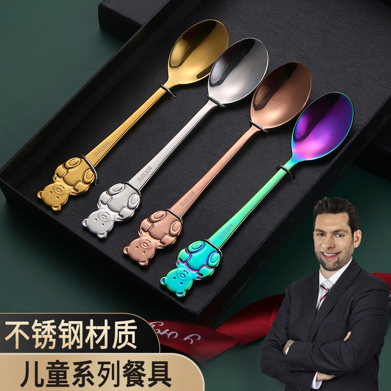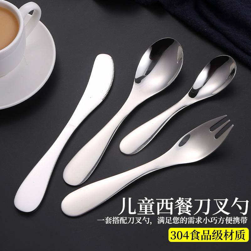 Creative 304 stainless steel children's spoon Coffee spoon Children's steak knife and fork seasoning spoon Spoon Korean knife and fork spoon